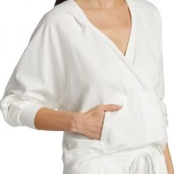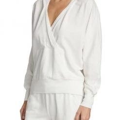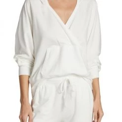 The Athena sweater by Splendid is crafted of a stretch cotton blend with a front crossover detail.