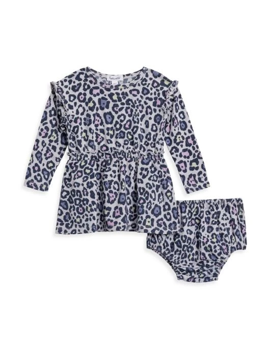 A colorful leopard print and ruffle details at the waist and shoulders accent this stylish two-piece set. 48% polyester/36% cotton/11% rayon/5% spandex. Machine wash. Imported.