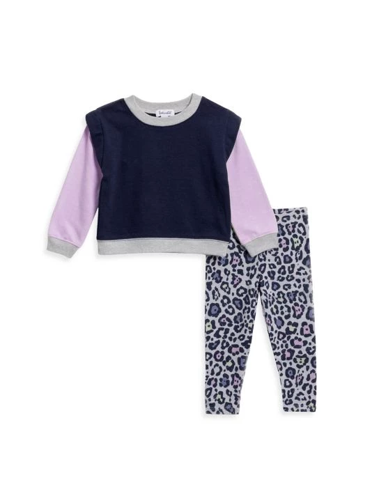 A colorblock design and playful leopard print enhance the sweater and leggings of this two-piece set. 50% polyester/38% cotton/12% rayon. Machine wash. Imported.