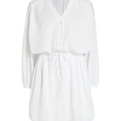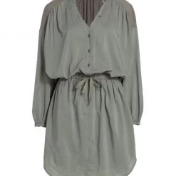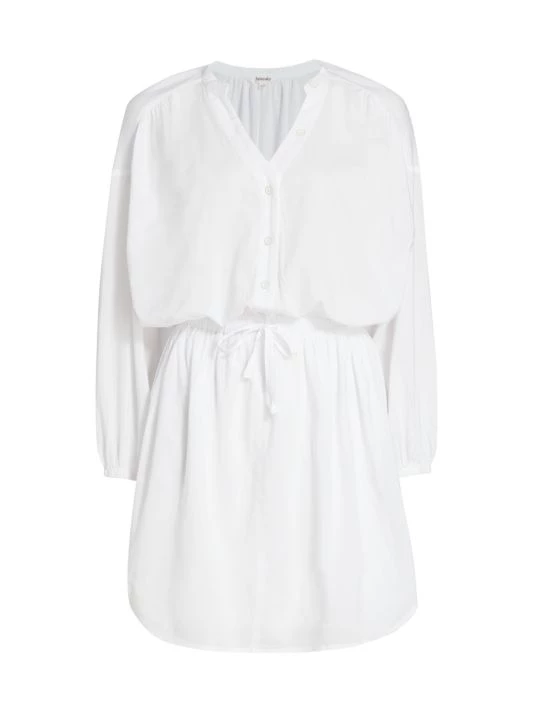 Crafted of a supple cotton blend, Splendid’s Blaise minidress is styled with a button closure, long sleeves, and elasticized drawstring waist.