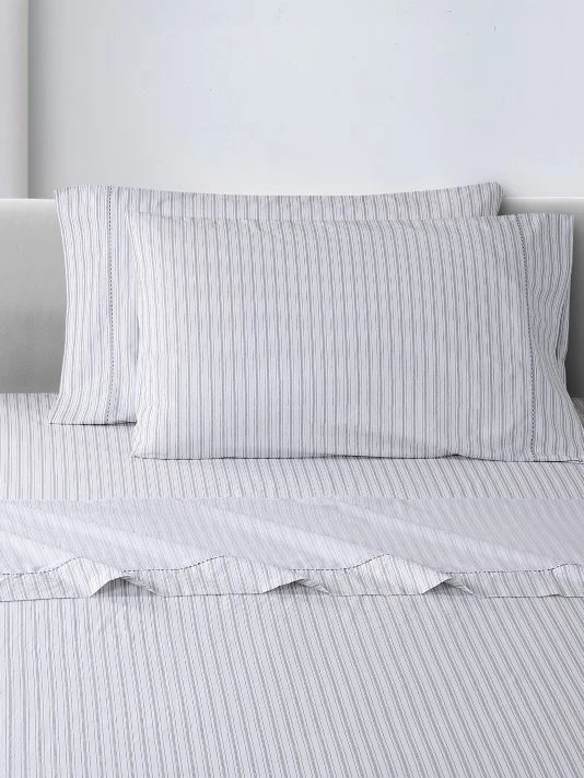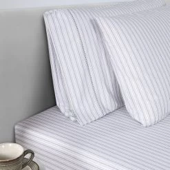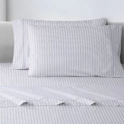 Bring the relaxed comfort of Splendid® to the bedroom with the Brighton Stripe sheet set. Using a washed percale weave in 100% cotton for ultimate softness, this sheet set is packaged in a reusable bag that is perfect for storage or travel. The sheets also feature an anti-microbial treatment to help keep them fresh, clean, and odor-free.