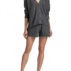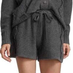 Cashmere drawstring shorts adorned with lace-inspired appliqués with fringe trim.
