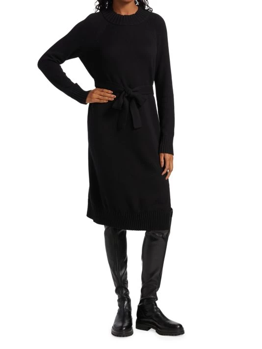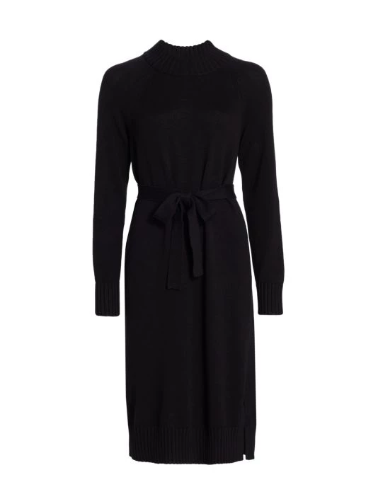This sweaterdress is designed with a sash belt at the waist.