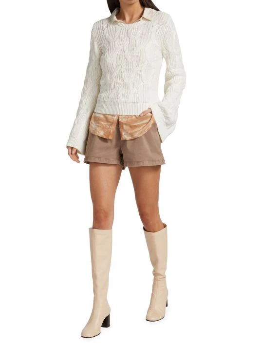 Styled with flared sleeves, Splendid’s sweater is cable-knit from a supple cotton blend.