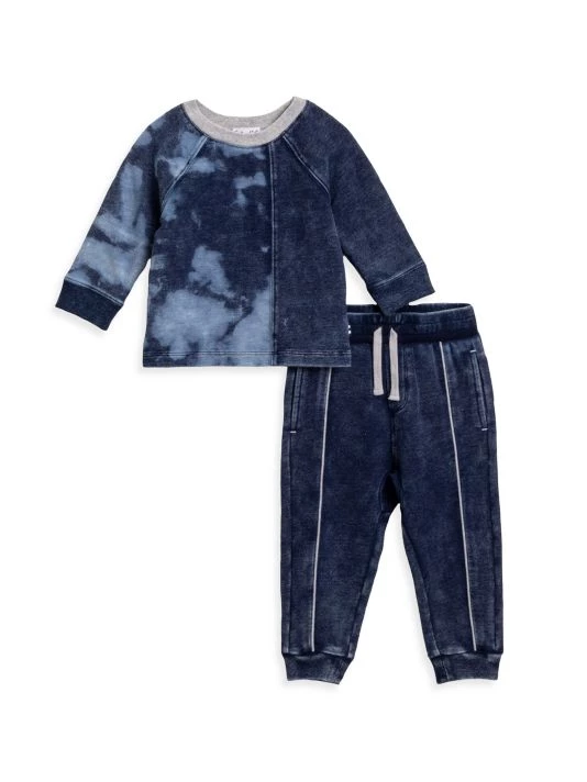 Contrasting seam details and a tie-dye design enhance this casual two-piece set. 80% cotton/16% polyester/4% spandex. Machine wash. Imported.