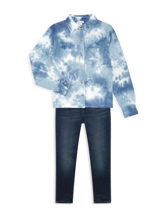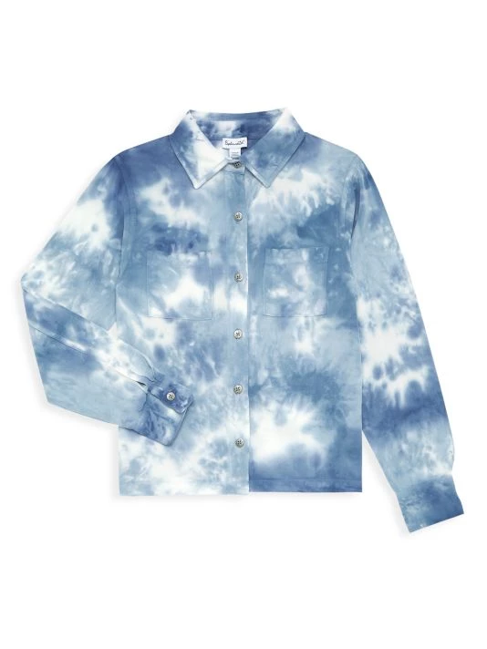 Crafted of viscose, this boy’s shirt from Splendid boasts a tie-dye pattern and fastens with button-front closures.