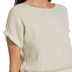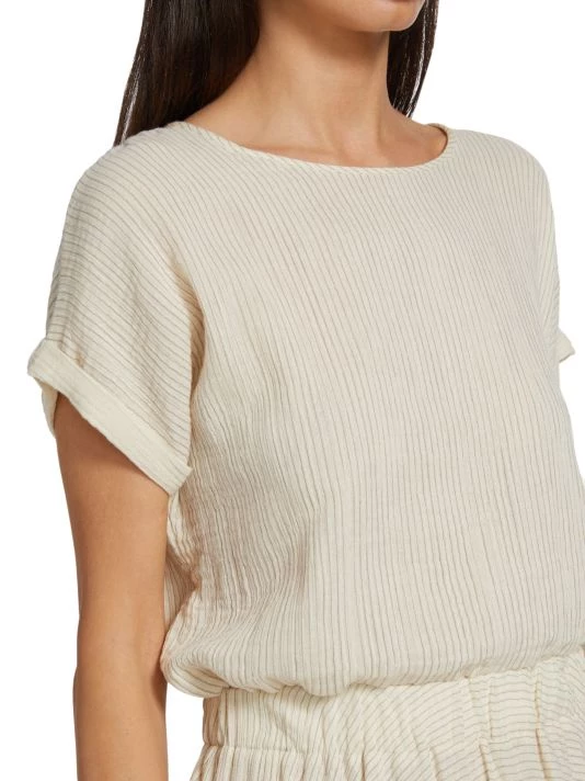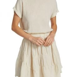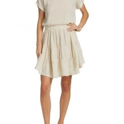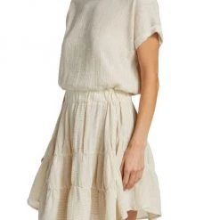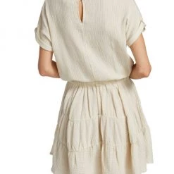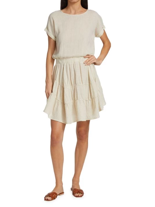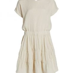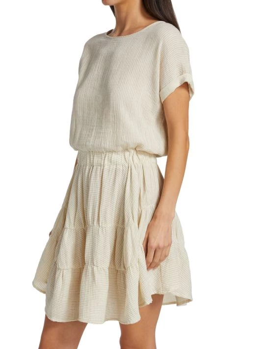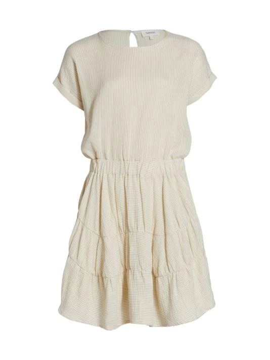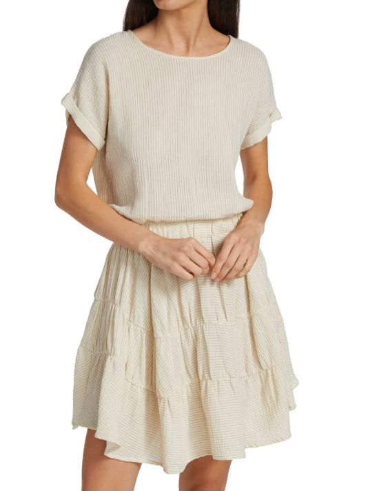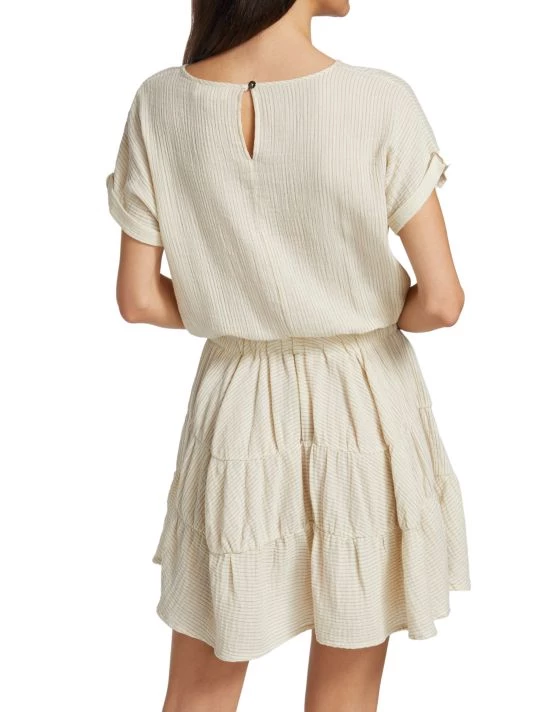Woven from lightweight cotton, Splendid’s minidress offers textured pleating. A banded elasticized waist separates the boxy bodice and tiered skirt.