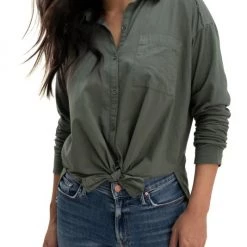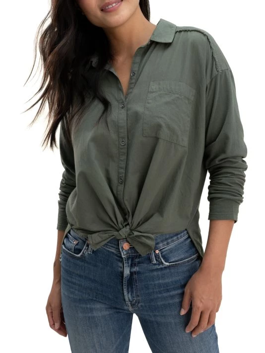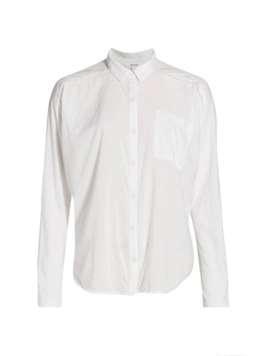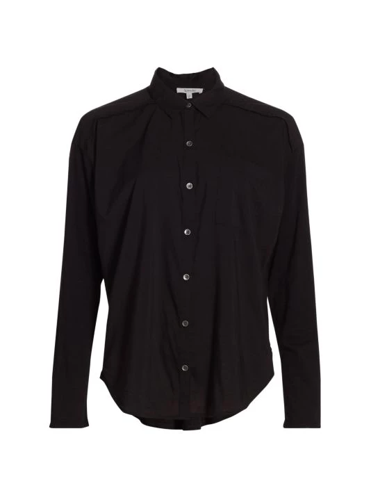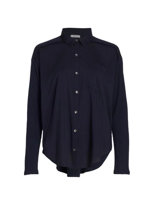 A staple wardrobe piece, this button-up shirt features a chic relaxed fit cut and statement shirttail hem.