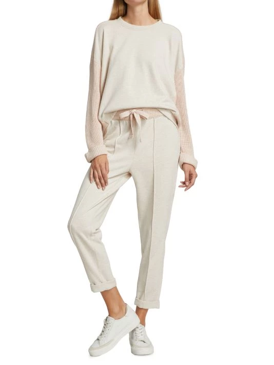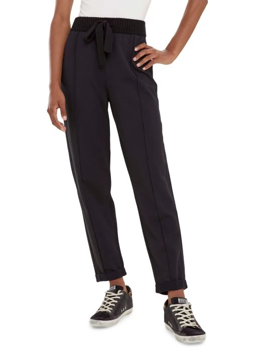 These pants are designed with stretch-cotton legs and a knit waistline.