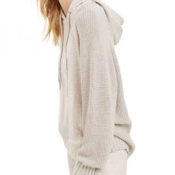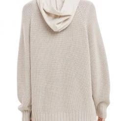Cozy oversized hoodie with knit raglan sleeves for a chic mix media design.