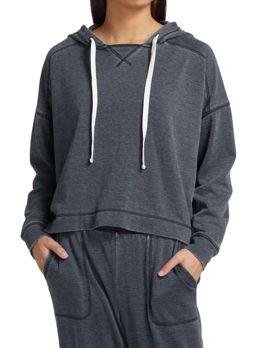 A soft cotton-blend hoodie with a worn-in dye finish.