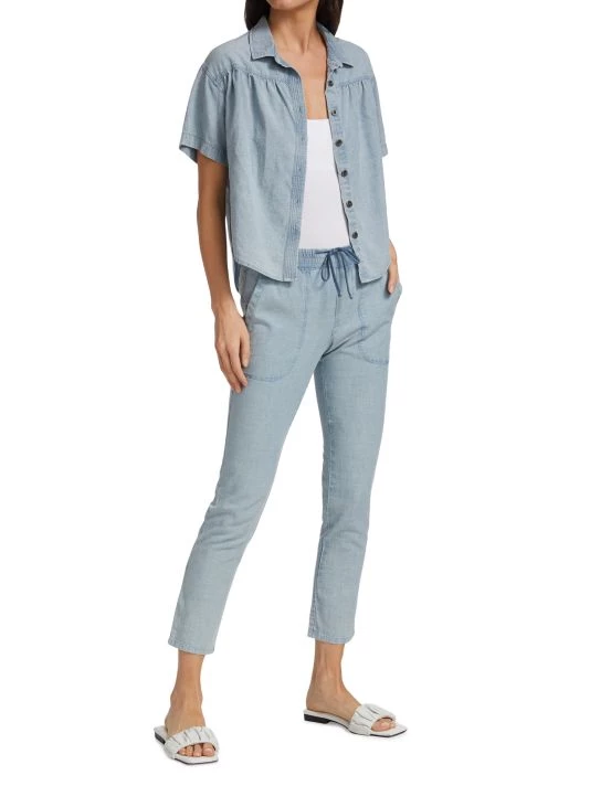 Composed of supple cotton chambray, Splendid’s Soleil cropped pants are styled with a drawstring waist and front patch pockets.