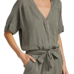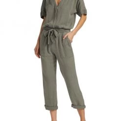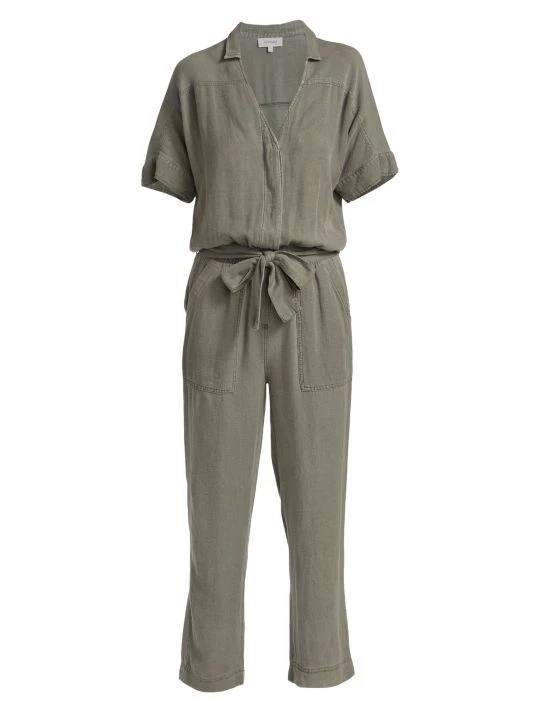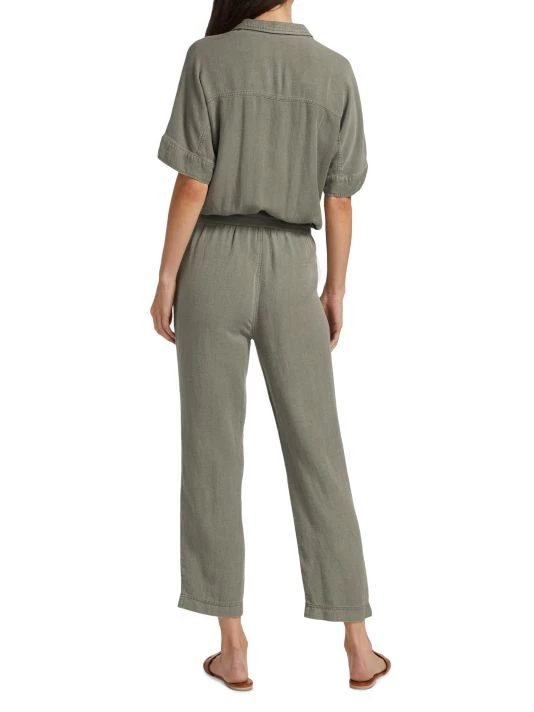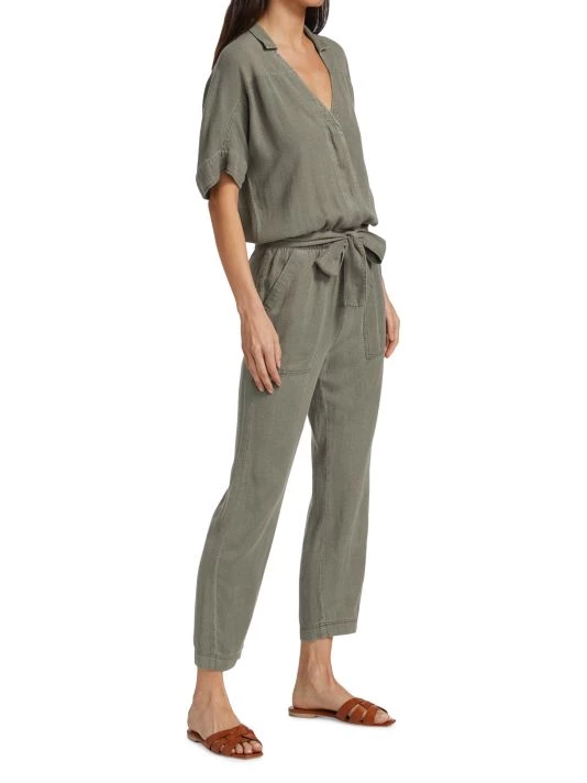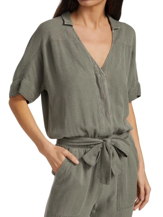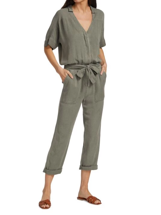 Composed of supple twill, Splendid’s Soleil jumpsuit is styled with a concealed button front, self-tie belt at the waist, and front patch pockets.