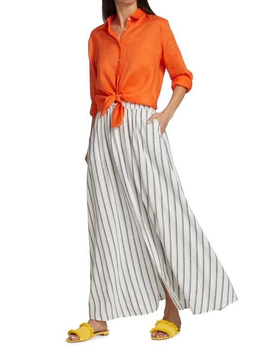 The Thira maxi skirt by Splendid is made of lightweight fabric with a striped pattern.