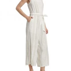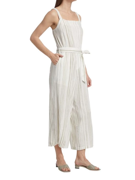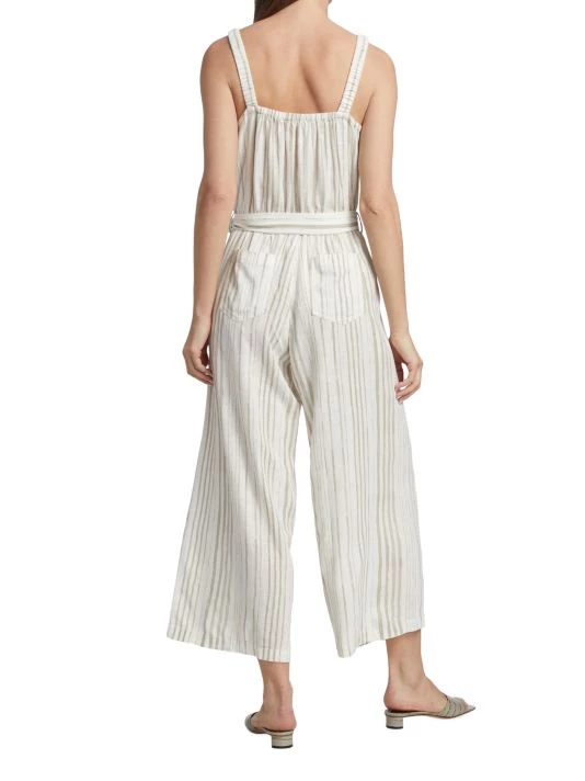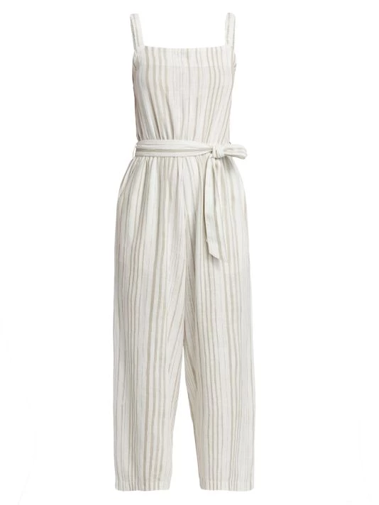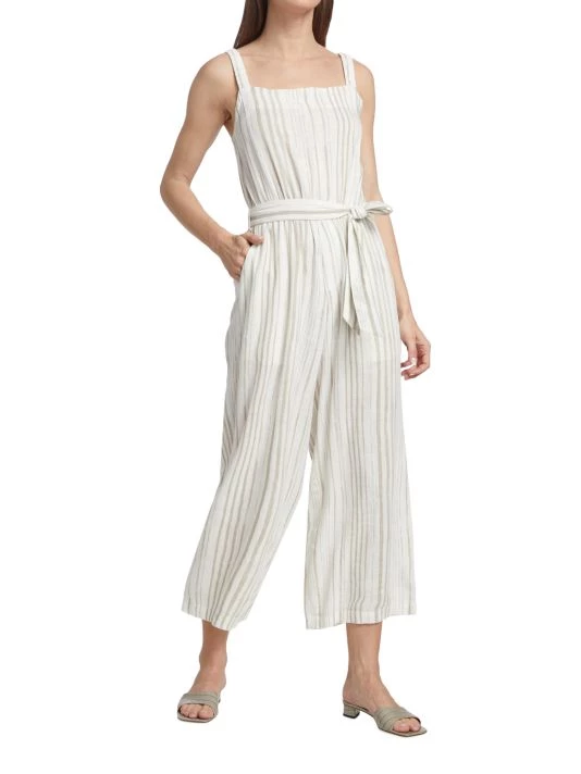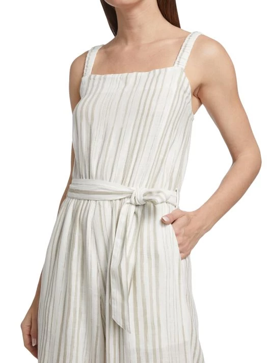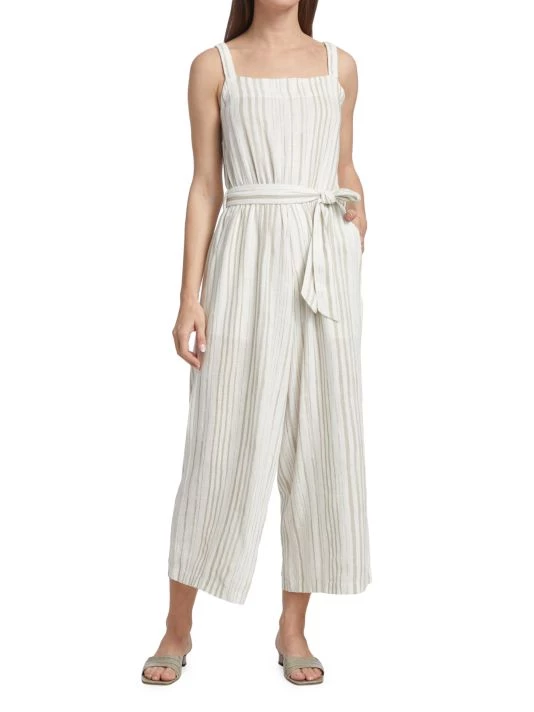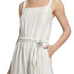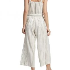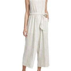 Splendid’s Twila jumpsuit features a cropped, wide-leg silhouette crafted of a luxuriously soft striped fabrication. Ruched shoulder straps and a self-tie belt complete this airy look.