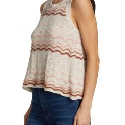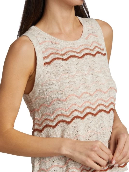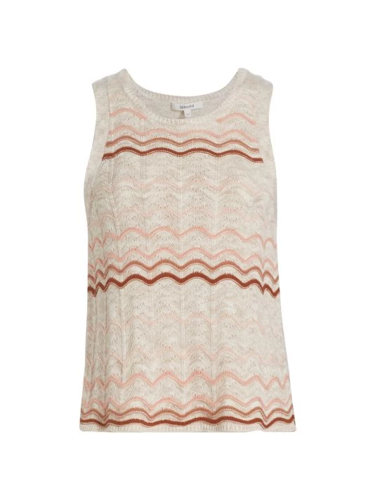 Crafted of a cotton-linen blend, Splendid’s Yuma sleeveless sweater features pointelle-knit construction with a delicate wave pattern.