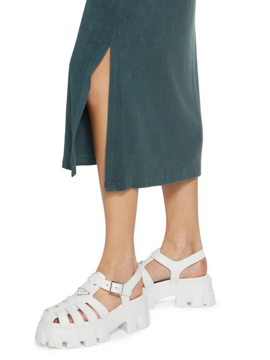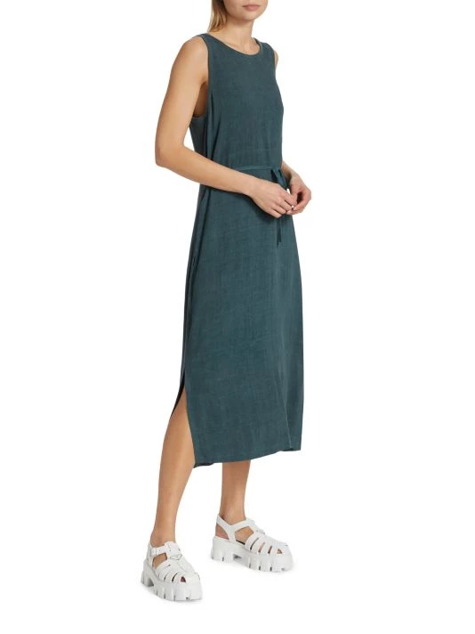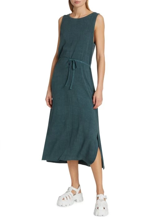 The Zinnia midi-dress from Splendid features a relaxed, straight-fit silhouette. A self-tie belt and a vented hem finish this laid-back look.