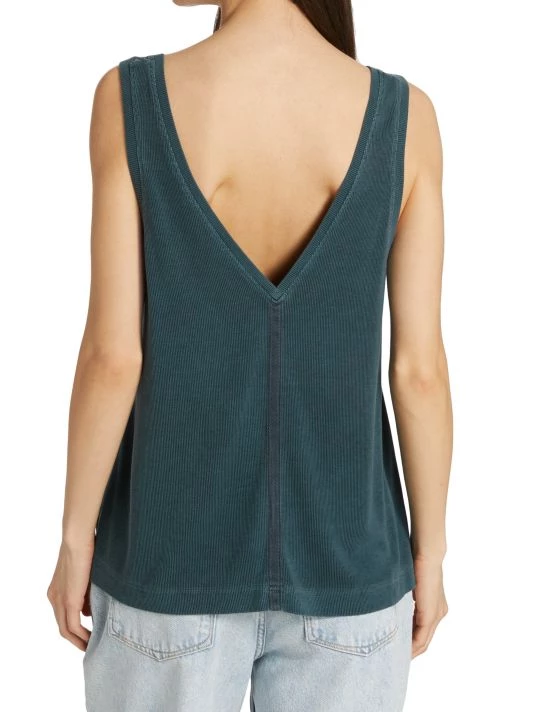 Crafted of rib-knit fabric, Splendid’s Zinnia tank top is enhanced with a flattering V-neck and a V’d back.